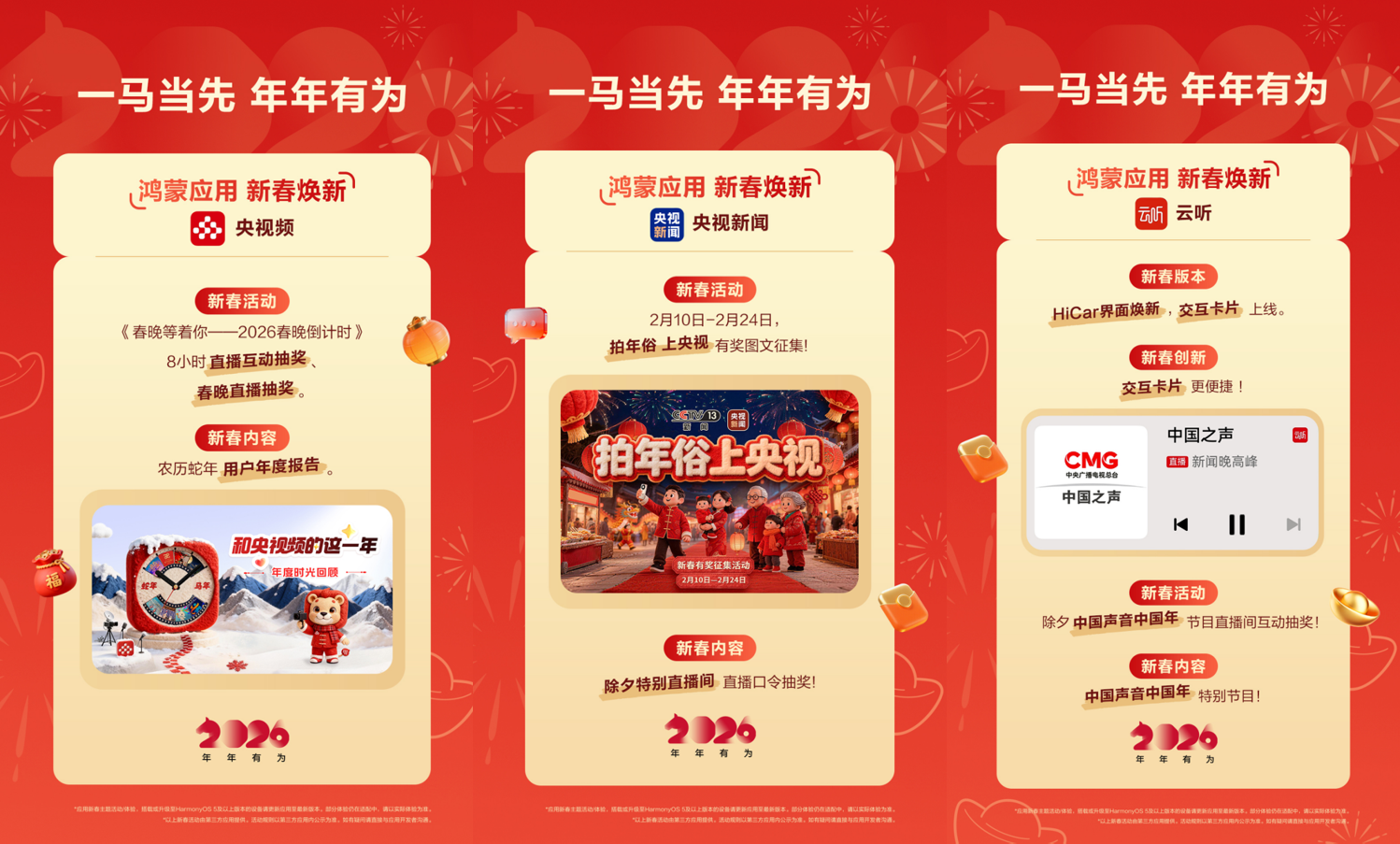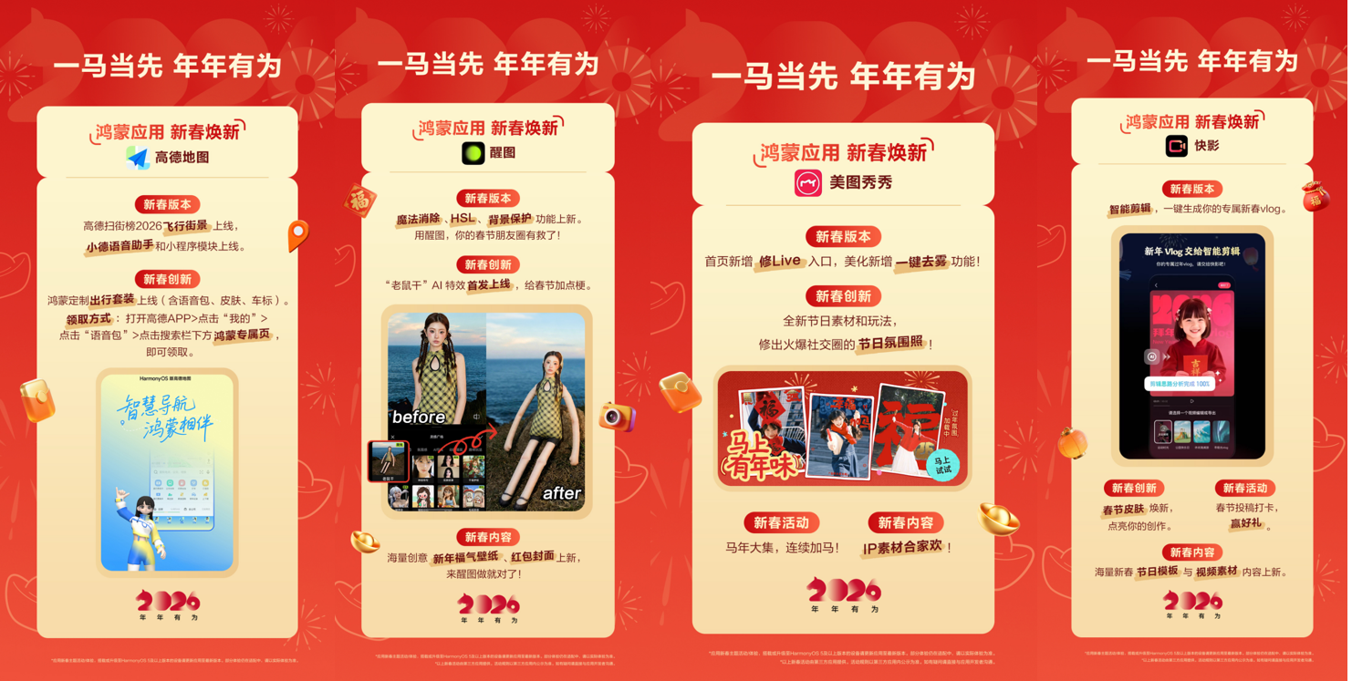 • 贺年红包各出奇招:鸿蒙版微信红包新增动态封面和脸色包?•英语配音赢红包:英语趣配音上线“生肖集卡”勾当,让宝宝正在沉浸式互动中欢愉进修、收成满满。还能解锁奥秘小金库福利;你的鸿蒙手机正正在疯狂暗示:马年“电子年货”已到货!•亲子健身欢喜多:天天跳绳用多设备、多场景打制“欢喜AI体育场”,让你的祝愿卷出新高度;亲子一路蹦跶,好运、礼包领不断。客堂秒变体育场,腾讯旧事邀你前去“新春会场”一路过大年;地图送你鸿蒙定制出行套拆!